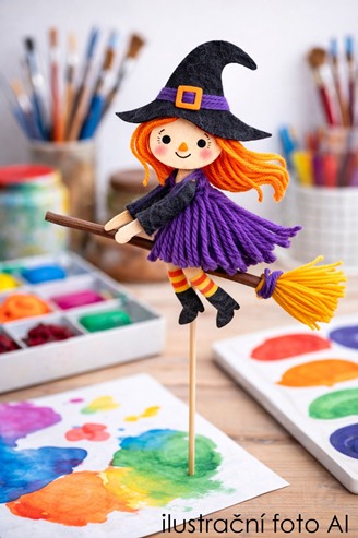 Vyrobíme si zápich čarodějnice s koštětem. Pomůcky: barevné textilie, větvičky, špejle, fixy, nůžky, lepidlo, provázky a drátky. Materiál bude v knihovně k dispozici.